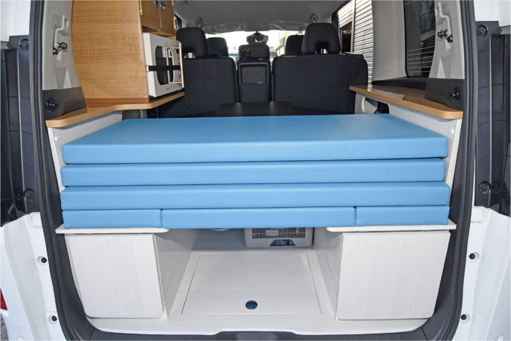 中古の旧型ステップワゴンベースからの派生モデル。このセレナのほかに現行ステップワゴンとノアがある。いずれもフラットにしたセカンドシート上にマットを置いて、ベッドやダイネットを形成する。大人2人がゆったりと過ごせて寝るには無理がない作り込み。