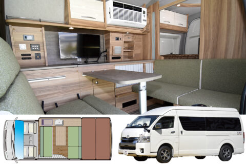 | ベース車両 | ハイエーススーパーロング ワイドボディハイルーフ キャンパー専用車 |