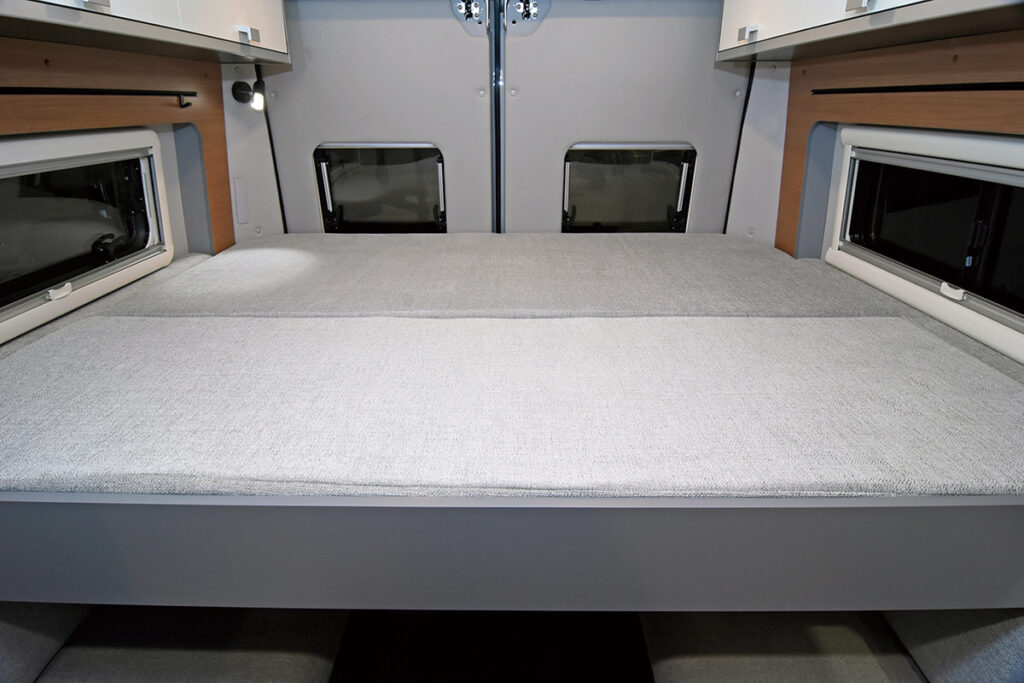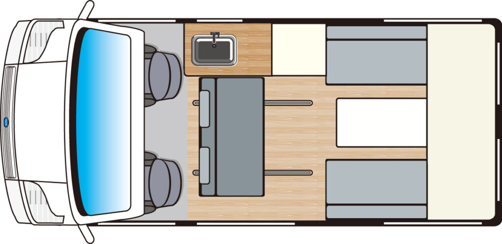 | 標準装備 | コンロ/1ウェイ・90ℓ冷蔵庫/電子レンジ/ルームエアコン/50Ahサブバッテリー×4/20ℓ給排水タンク/1500Wインバーター/FFヒーター ほか |