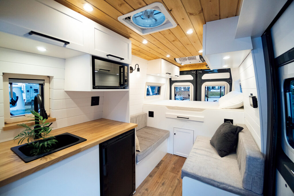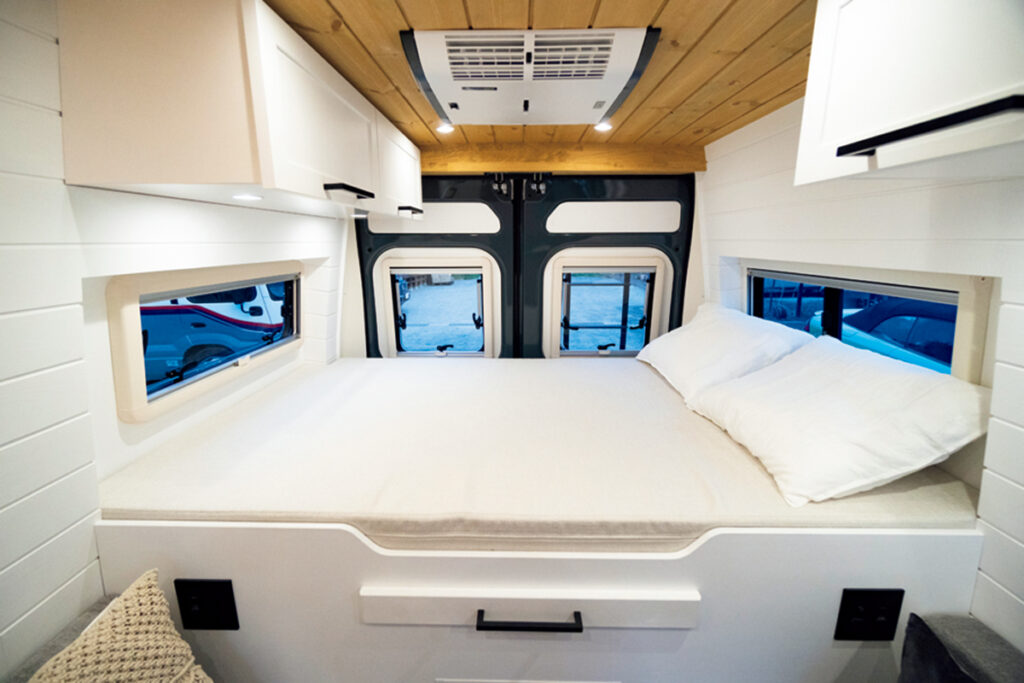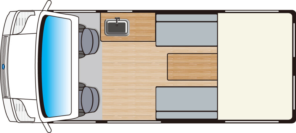 リヤのハイマウント形式の常設ベッドでいつでも気軽に寝られるのが最大のメリット。
