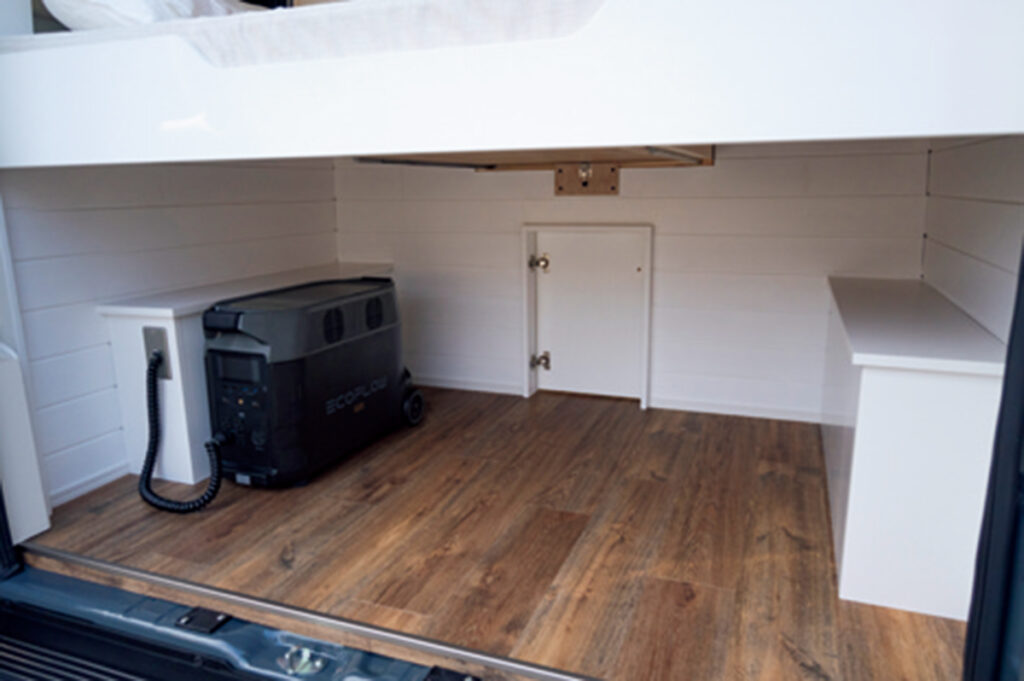 リヤベッド上部クリアランスも十分に確保。またリヤベッド下を利用した収納スペースもある