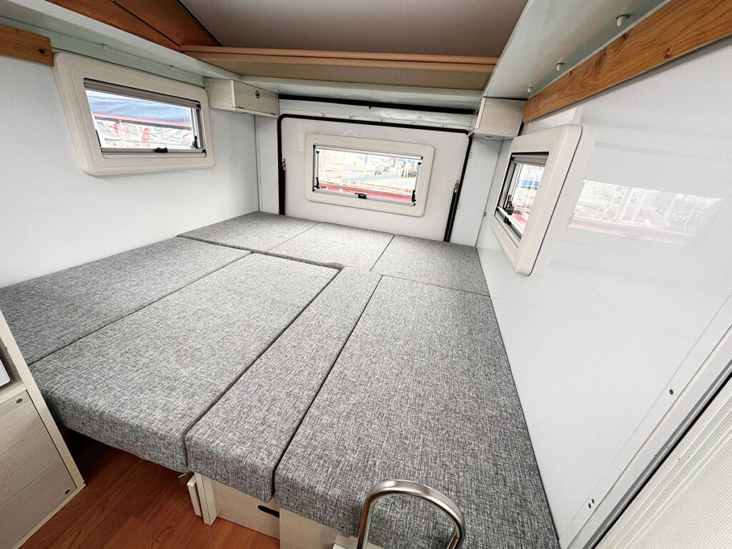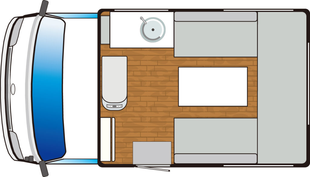 | 標準装備 | 1ウェイ・15ℓ冷蔵庫/電子レンジ/車載クーラー/FFヒーター/100Ahリチウムイオンサブバッテリー/10ℓ給水タンク/10ℓ排水タンク ほか |