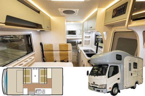 | 標準装備 | エアコン/FFヒーター/シンク/20ℓ給排水タンク/冷蔵庫/電子レンジ ほか |