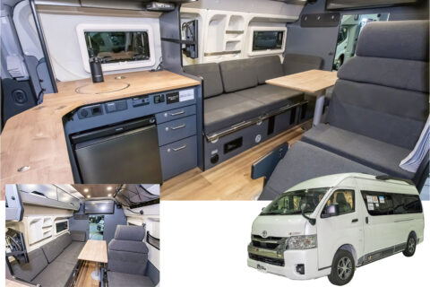 | 標準装備 | 100ℓ給水タンク/85ℓ排水タンク/温水装置/外部電源入力装置/2口コンロ/トイレ(カセット式)/84ℓ冷蔵庫 ほか |