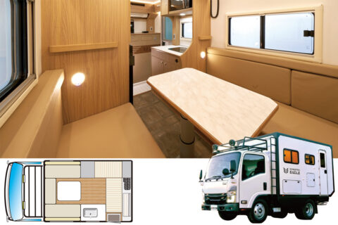 | 標準装備 | カセットコンロ/1ウェイ49ℓ冷蔵庫/105Ahサブバッテリー/10ℓ給ℓ排水タンク ほか |
