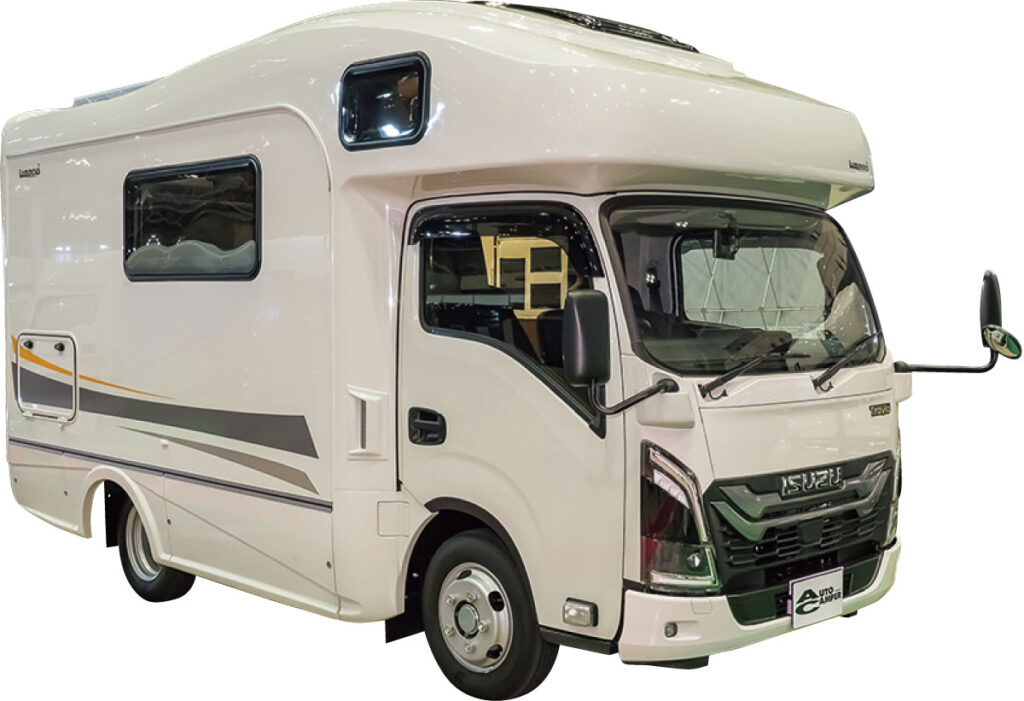 普通車AT限定免許で運転できる、トラヴィオベースの2×5mキャブコン。最小回転半径4.4mで取り回し性に優れ、先進安全装備も充実しているので初心者でも安心して運転できる。