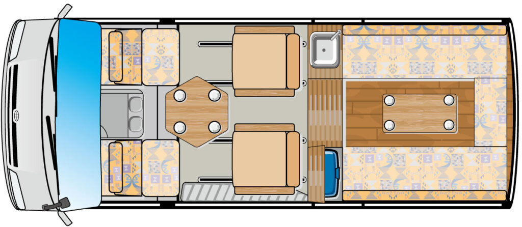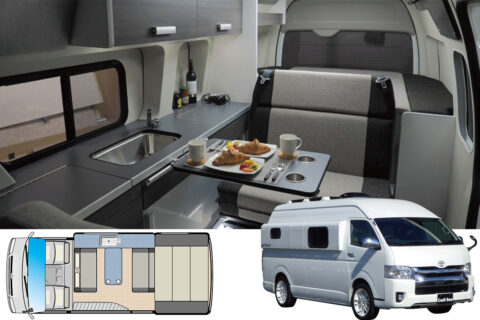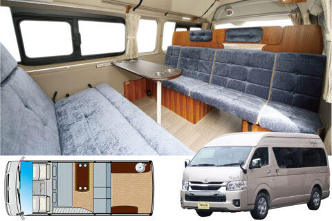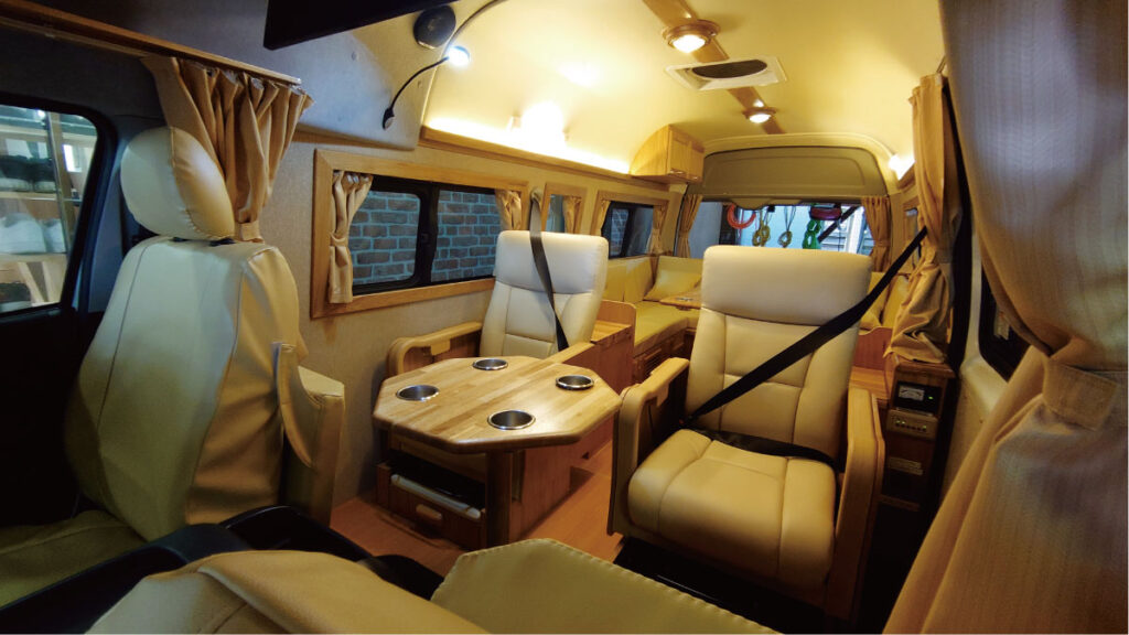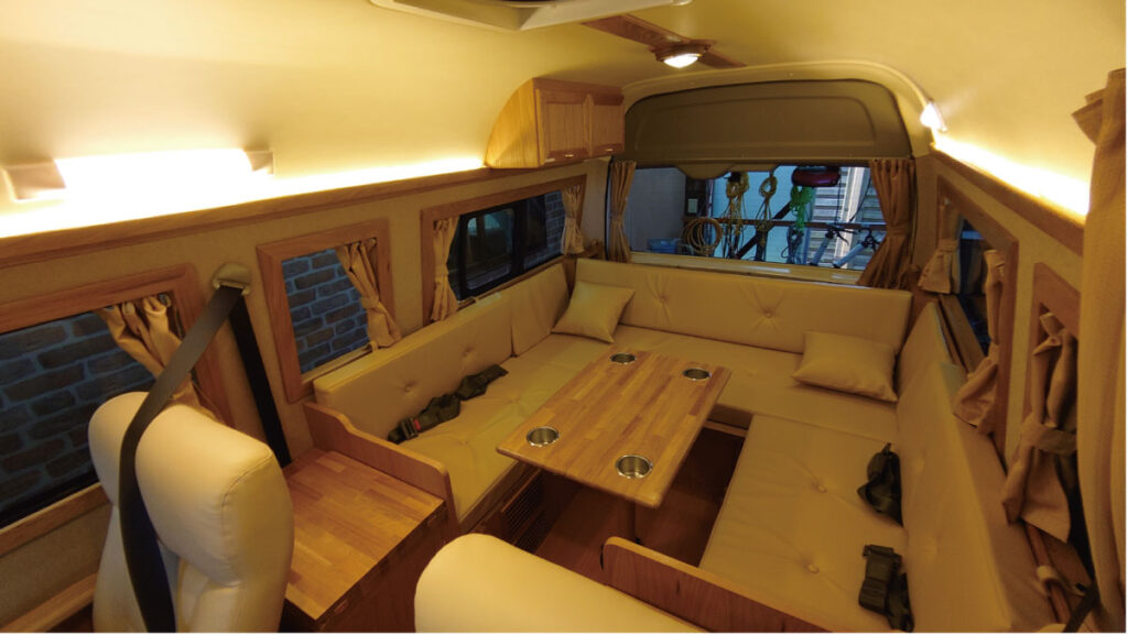 オプション 電子レンジ/DC12Vクーラー or ルームエアコン/FFヒーター/トイレ(ポータブル式 or フィルム式)/ポータブル電源接続/200Ah〜400Ahリチウムイオンサブバッテリー ほか