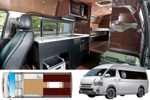 | 標準装備 | 40ℓ冷蔵庫/電子レンジ/ルームエアコン(クーラー・ヒーター)/300Ahリチウムイオンサブバッテリー/20ℓ給排水タンク ほか |