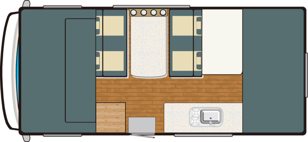 標準装備 シンク/カセットコンロ or IH/148ℓ冷蔵庫/電子レンジ/DC12Vクーラー/FFヒーター/300W+165Wソーラー充電器/2000Wインバーター/105Ahリチウムイオンサブバッテリー×4/トイレ/135ℓ給水タンク/75ℓ 排水タンク ほか