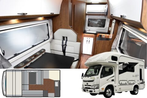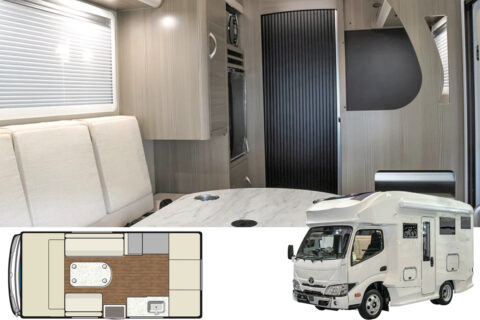 現行の普通免許取得で運転できるのは車両総重量3.5tまで。オステリアは、そのサイズと車重カテゴリーに対応し、全幅は何と1920mmにまで抑えている。しかしその内容は、6人乗車6人就寝のファミリータイプ。ボディサイズだけをみれば、全長と全幅はミニバンと同程度なので、運転のしやすさや、取り回しといった点でも、不自由を感じるようなことはない。室内は明るい雰囲気にまとめられ、間接照明にLEDを使いスッキリしている。平面を生かした家具は見た目もスマートだ。