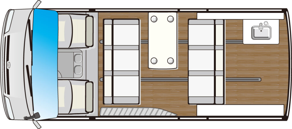 | 標準装備 | カセットコンロ/10ℓ給排水タンク/シンク ほか |