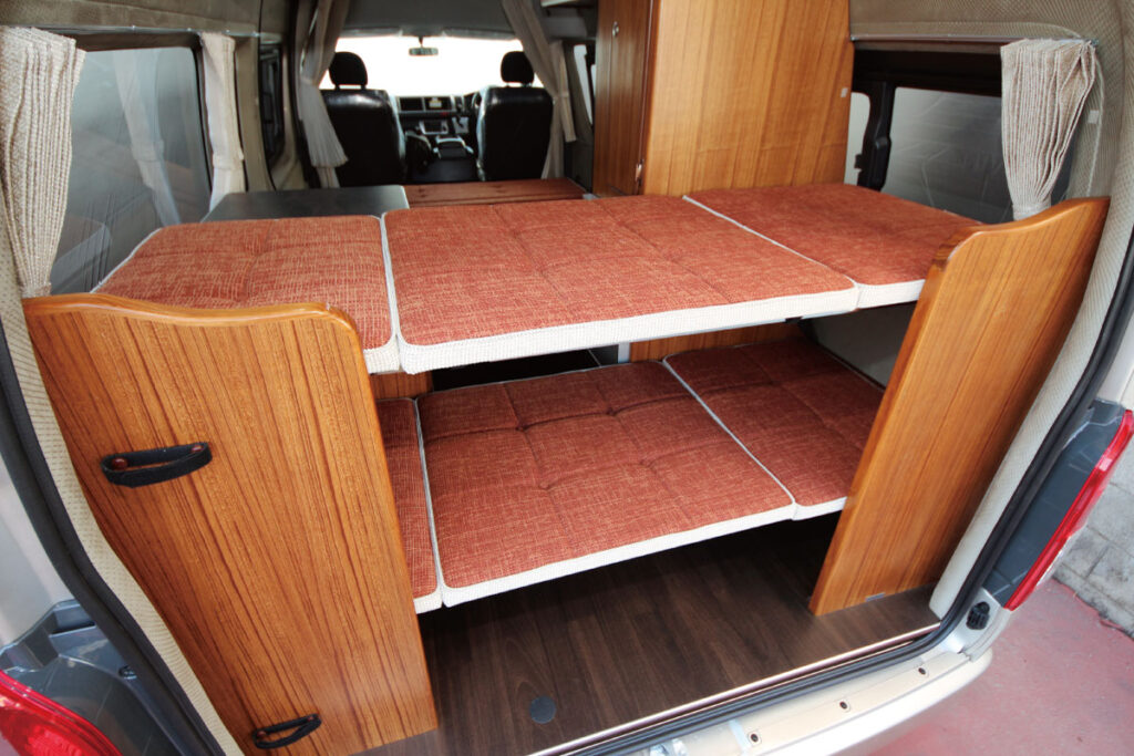 リヤに子供用の2段ベッドも備わる。