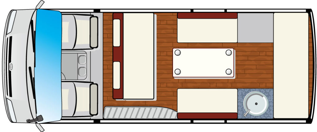 | オプション | 電子レンジ/トイレ(ポータブル式)/FFヒーター/100Ahリチウムイオンサブバッテリー1 or 2/ポータブル電源接続 ほか |