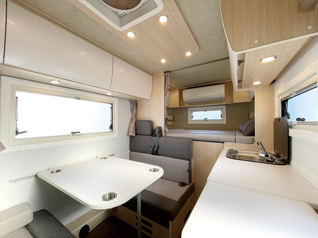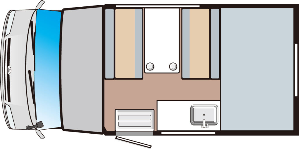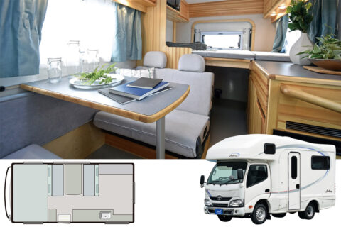 | 標準装備 | シンク/カセットコンロ/1ウェイ・32ℓ冷蔵庫/300Ahリチウムイオンサブバッテリー/40ℓ給排水タンク/FFヒーター/ルームエアコン/300Wソーラーパネル/1500Wインバーター ほか |