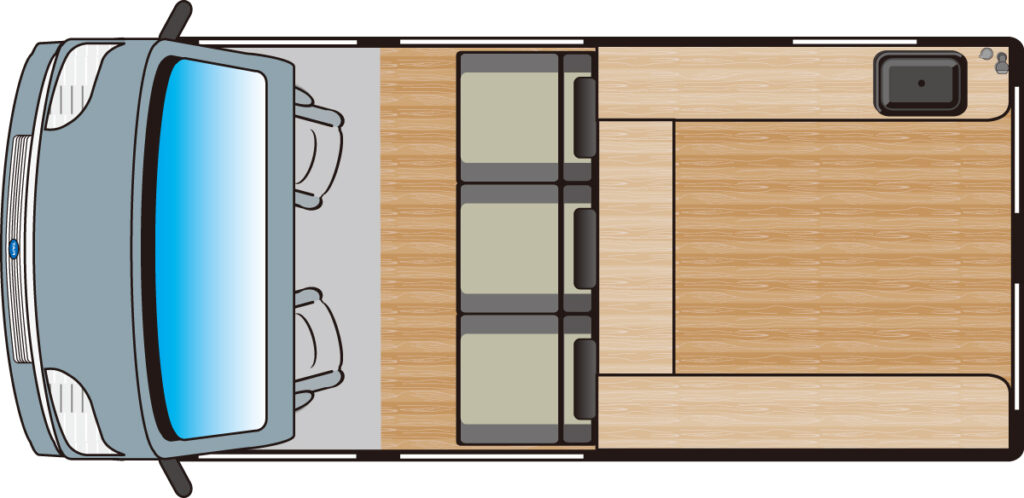 | 標準装備 | コンロ/100Ahリチウムイオンサブバッテリー/19ℓ給排水タンク/シンク/冷蔵庫/100Ahリチウムイオンサブバッテリー/1500Wインバーター ほか |