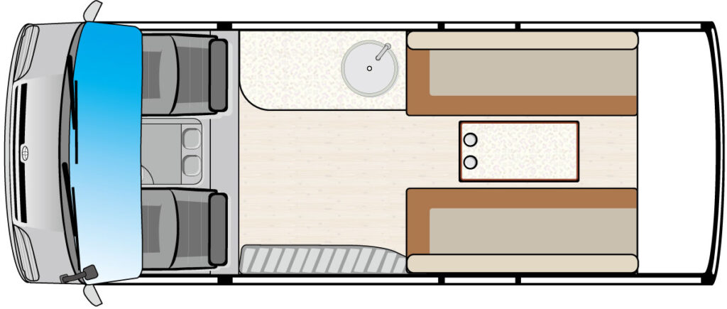 | 標準装備 | カセットコンロ/シンク/10ℓ給排水タンク/電子レンジ/FFヒーター/トイレ(ポータブル式)/150Ahリチウムイオンサブバッテリー/ポータブル電源接続/1500Wインバーター/310Wソーラーシステム ほか |
