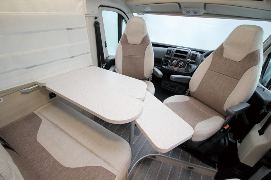 デュカトバンベースならではの広いラゲッジルームを、収納と就寝スペースにフル活用したモデル。