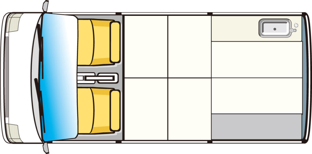 | 標準装備 | シンク/300Ahリチウムイオンサブバッテリー/10ℓ給排水タンク/1500Wインバーター/DC12Vクーラー/225Wソーラーパネル/電子レンジ ほか |