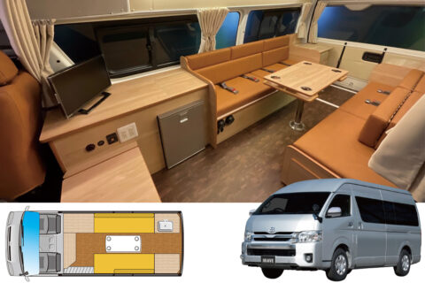 ベースはコンパクトハイトワゴンのスズキソリオ。セカンドシートをたたんでフラットにした状態で、5枚のマットを敷いてベッドとする。フラット感も上々で、大人2人で寝るには問題なし。リヤ両サイドにはベースボードがあり、ここを橋渡ししてテーブルをセット。ほかにもオプションが充実。