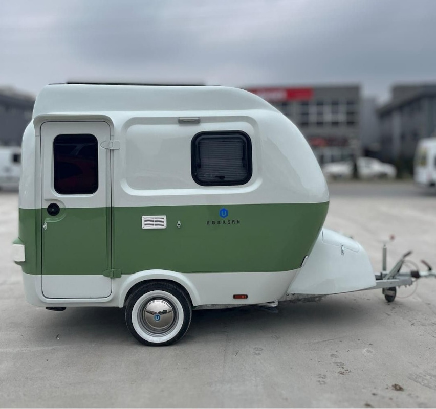 コロンとした外観が特徴のトルコのビルダー「ウマルサン」のトレーラーのなかでも最小サイズで、もちろんけん引免許も不要なのがこの「ウマルサン ミニ」だ。様々なヘッド車にも対応できる3m未満の全長で、一般的な駐車場でも保管できるのが魅力。