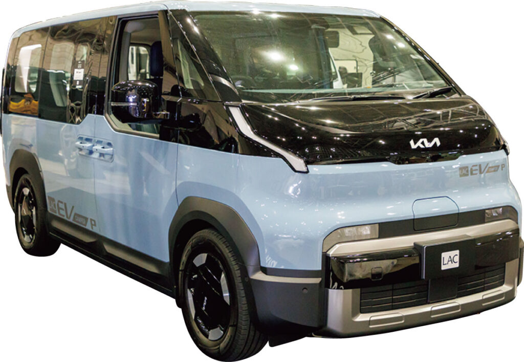 2026年春に日本上陸した韓国キア社のEVミニバン「PV5」をキャンピングカーに仕立てた。乗用モデルベースの「P」と貨物ベースの「C」の2台がジャパンキャンピングカーショーに参考出展された。