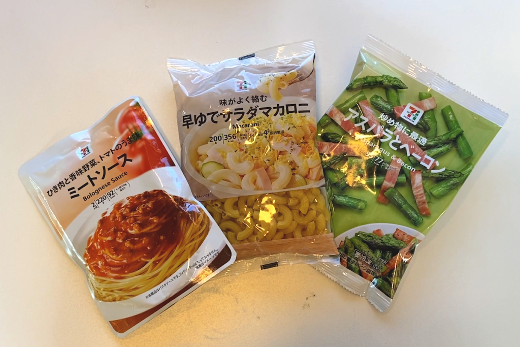 ・冷凍野菜(今回はコンビニにあった「アスパラとベーコン」を使用。ブロッコリーなどもおすすめ)