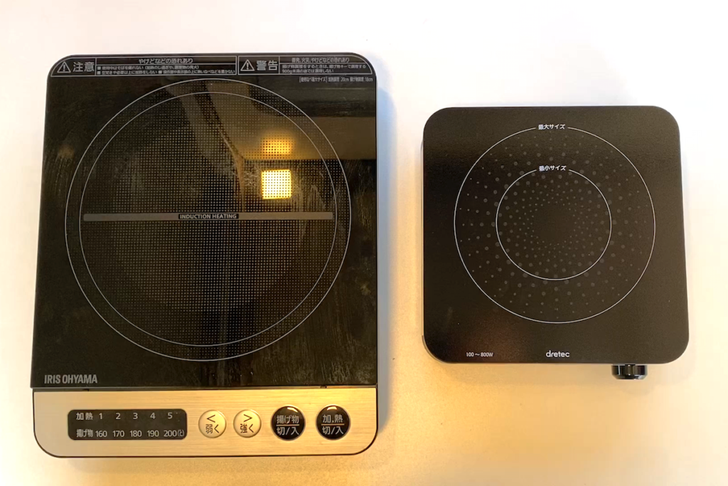 コンパクトなボディなので、対応する調理器具も鍋底の大きさが直径約10cmほどのものから14cmのものまで対応する。IH対応の大き目のマグカップや、ミルクパンなどのコンパクトな調理器具がぴったり。さらにダイネットのテーブルに置いても余裕がある。これもキャンピングカーで使いたい魅力の1つだ。