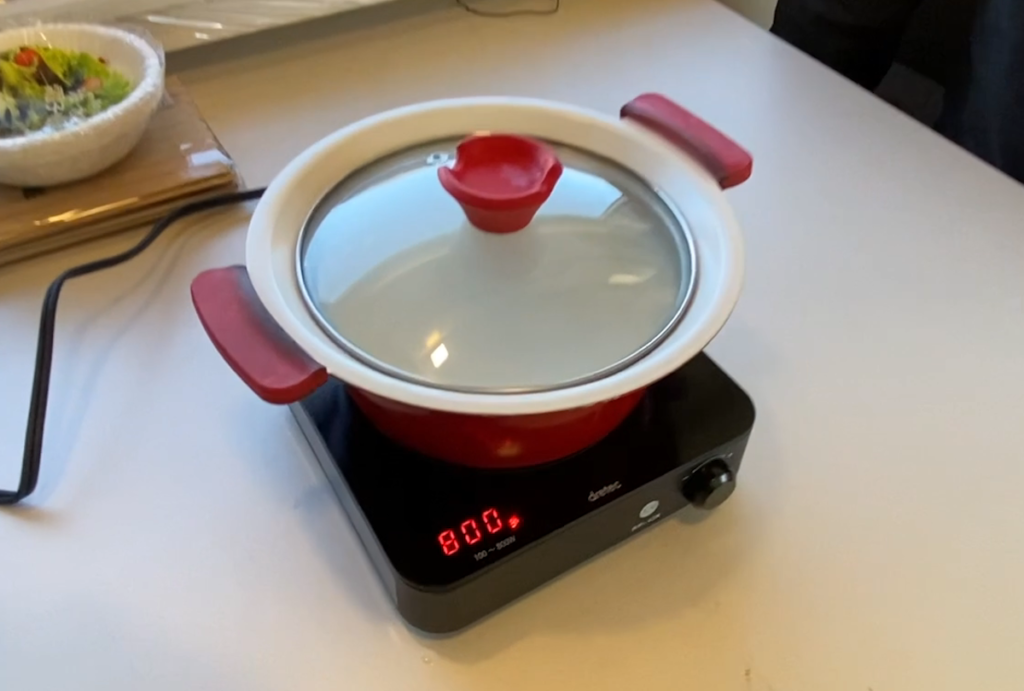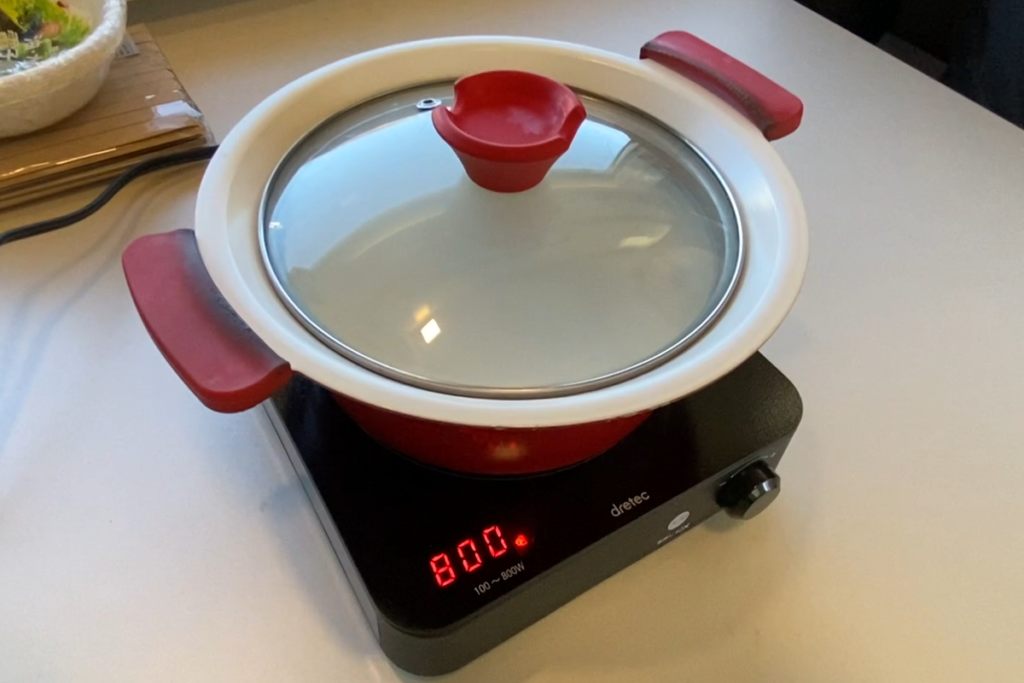 そして使ってみてわかった便利な点が、火力が「400(W)」というように数字で表示されること。自分が使っている電力がわかるので、電力量に限りがあるキャンピングカーで使うの際は最適ということだ。ちなみに今回はバンテックのZiL520の車内で調理させてもらったのだが、このレシピでの電力の消費は10%ほどだった。