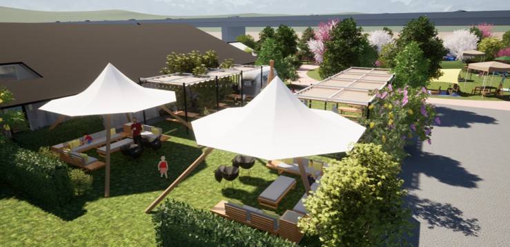 また、キャンプ施設であるウエインズパークU-BASE CAMPでは手ぶらでもBBQを楽しめる施設はもちろん、実際に宿泊できるコテージやキャンピングカーや車中泊仕様車ユーザーにうれしいRVパークが設置される。そのほか地元の食材をアウトドアスタイルで楽しめるという焼肉レストラン「焼肉ほりにし」やカフェ、ドッグランなども予定されている。そしてサウナも備えた温浴施設も併設されるというからスゴい。