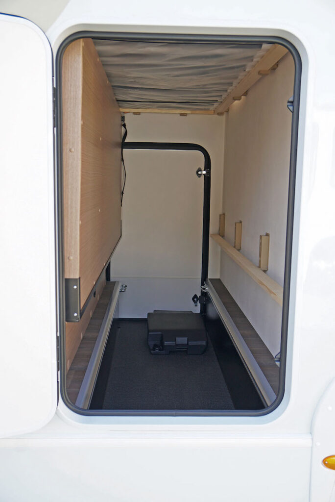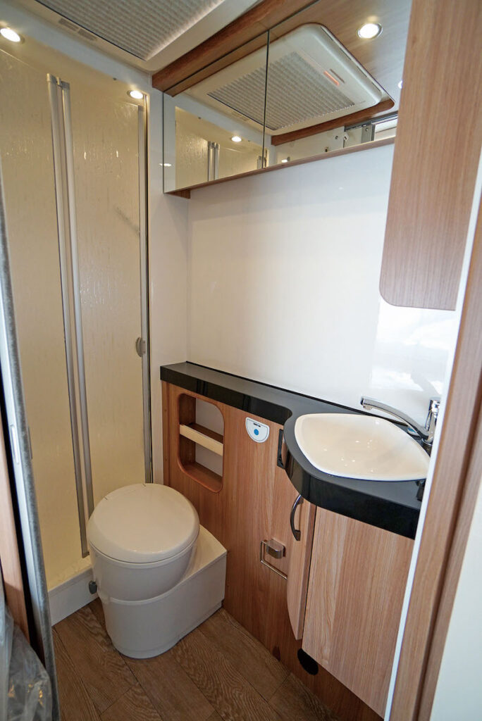 キャンピングカーにはマルチルームを備えるモデルもある。荷物置き場としても使えるほか、トイレやシャワーを設置しているものもある。ポータブルやカセット式トイレは本体にタンクを備えているので気にする必要はないが、マリン式トイレは給水タンクの残量を把握しておくこと。シャワーは水だけのものと温水仕様もある。どちらにしても容量や排水の仕方、メンテナンス性などを事前に調べておくといい。