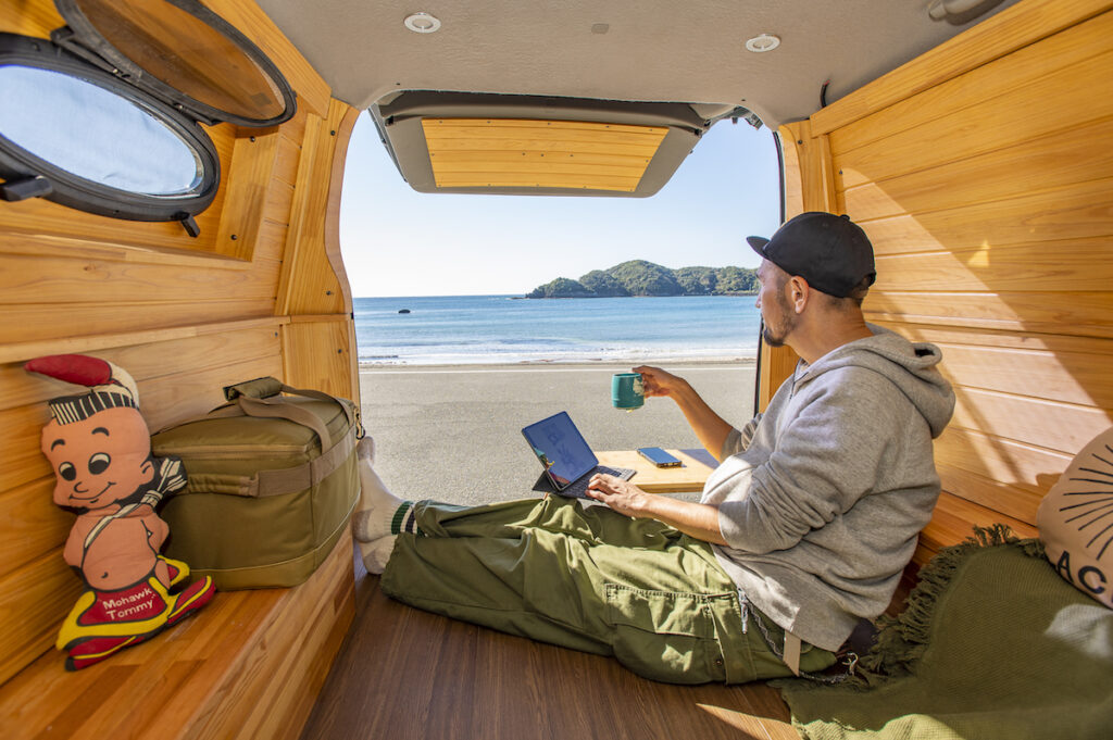 実際にパークを利用してみて、事前予約していた温泉が想像以上に心地よく旅の疲れもしっかり癒やしてくれさらに肌も潤ったのが実感できた。また、早朝のビーチはサーフィンを楽しむ人が多くいて賑やかだったのだが、パークはビーチから少し離れていることもあってのんびりとくつろげるのも良かった。オーニングを出したりできないのは残念だったが、遊びや観光など南伊豆を巡るのには買い物や食事などすべてにおいて便利なパークでした。