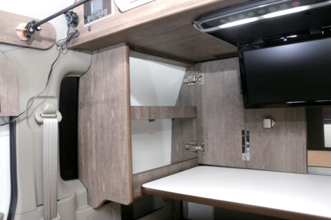 車両右側のキャビネットは扉つき。生活感のある小物などはこちらに隠す使い方が想定されている。