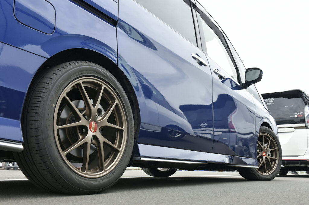 自慢はブルーレイが再生できるストラーダのオーディオと、センターエンブレムを赤に交換したBBS RI-A マットブラウンのホイール。なんとBBSはもう一組、冬のスタットレスタイヤ用のRG-Rも購入。「BBSは鍛造で軽いしデザインもいい。一度履くと次も履きたくなってしまいますよね」と、オーナーはゴキゲンだ。