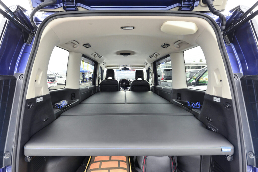 車中泊というよりかは、もっぱら3~4人で出かけるゴルフやスキーに使っているのだとか。マルチベッドは後ろのラゲッジスペースが広く、人数分のキャディバッグなら余裕で載せられるのが魅力。
