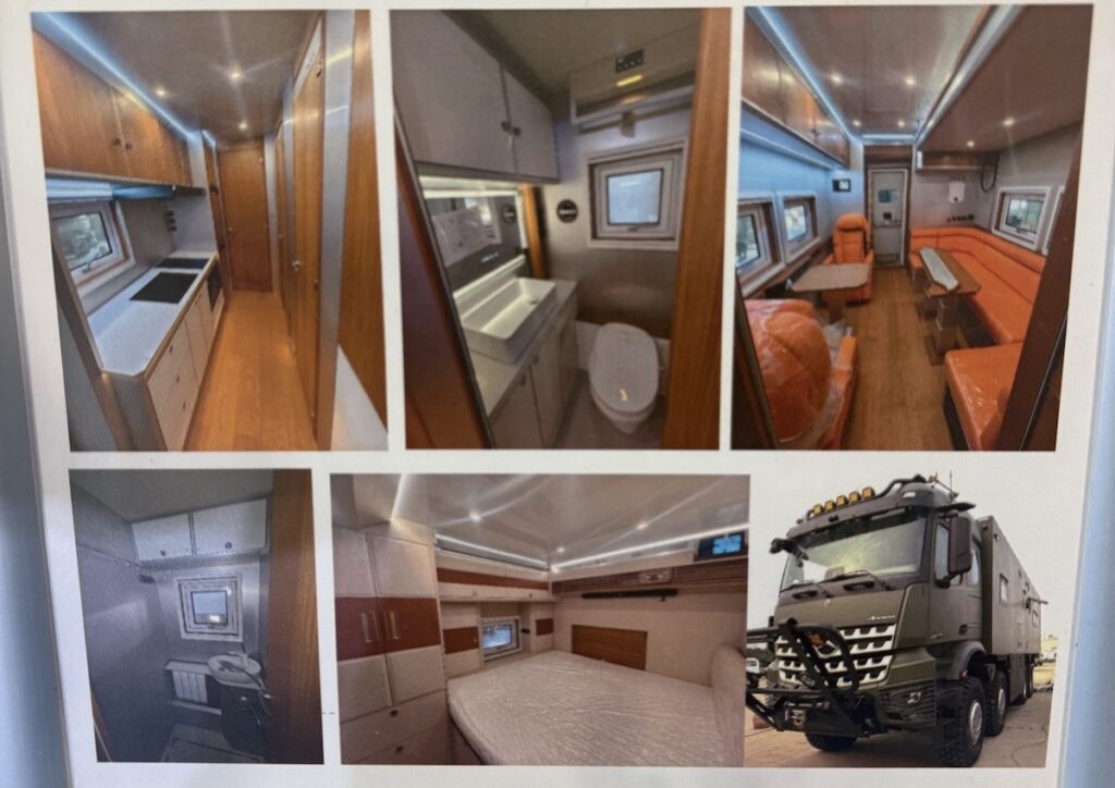 会場で一番大きく目立っていたこのクルマ。なんとこの見た目でキャンピングカーなのだ。メルセデスベンツのアロクスというトラックがベース。もちろん、日本では販売されていないが、世界でも年間数台しか売れないという激レア車だ。驚くのは見た目だけではない。八輪駆動で、タイヤの空気圧まで任意で設定できてしまうという悪路走破性。個人で所有するには大きすぎるが、さまざまな災害が起こってしまう日本でも、広い室内と走破性で救援活動で活躍できそうだ。