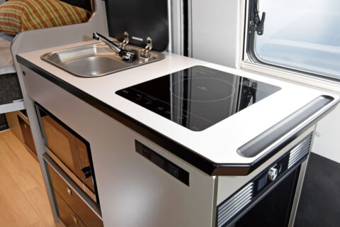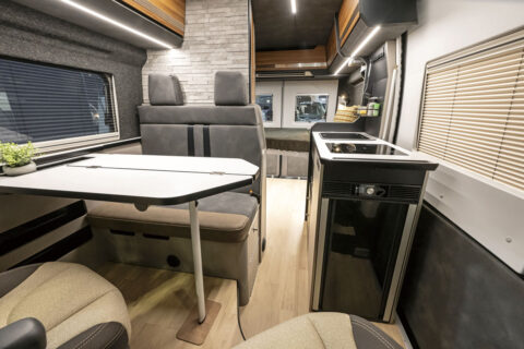 「フロントシートも居住空間として使うことで、室内を広くすることができました。リビング部分にトイレルーム、キッチン、ベッド、カーゴスペース、それぞれ独立してしっかり使えます」