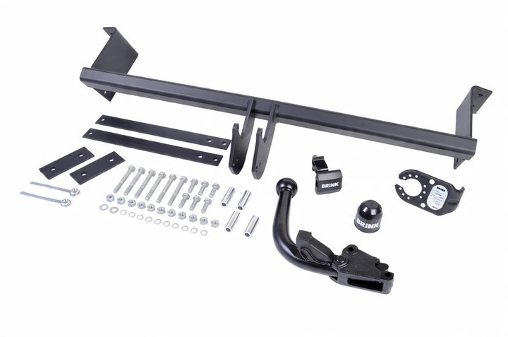 簡単にいうとけん引装置とは、ひっかけ棒のようなもの。車体の後部にボルトオンでこれを装着するだけだ(一部ボディパネルに穴開けが必要なこともあり)。