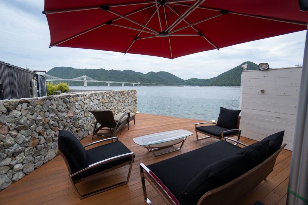日生湾が眺められるバルコニーもあり優雅な時間が過ごせる