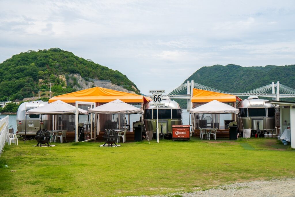 訪れてみると区画のサイズに余裕があり、目の前には穏やかな日生湾や備前♡日生大橋が望め、心底落ち着けるロケーション。山陽道を使って旅する人たちに、心も体も休まるちょうどいい中継地点として利用されているというのも頷ける。