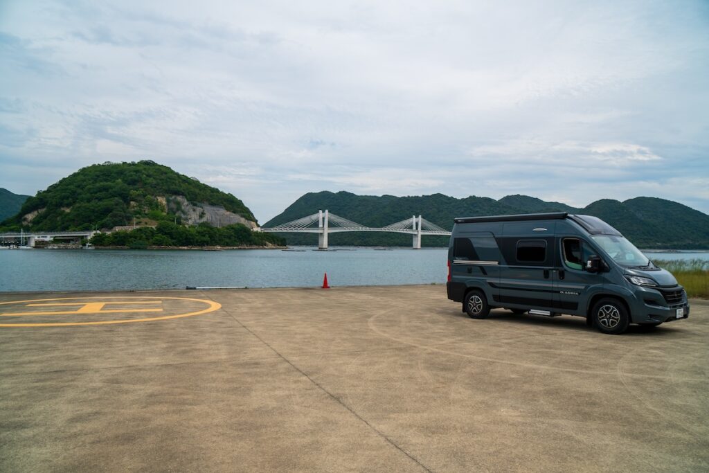 ヘリポートの利用がなければ、ヘリポートでの車中泊も可能。日生湾や備前♡日生大橋を車内から眺めながらの宿泊ができる