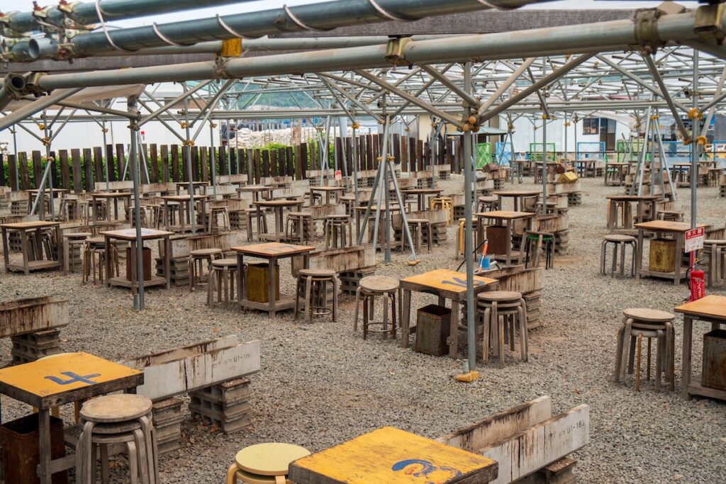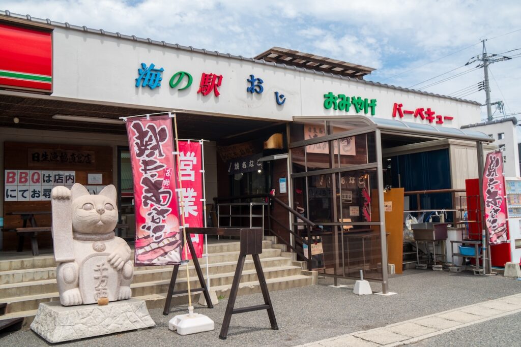 ごはん屋 ぼろ小屋の隣にあり、コンビニも併設。日生漁港の直営で、海鮮BBQが味わえる