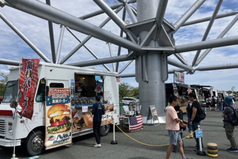 コットン製のフライングディスク体験、オリジナルレザーキーホルダー作成など、親子で楽しめるワークショップも充実。さらに、おしゃれなキッチンカーが並び、数々の賞を受賞している人気の高槻バーガーや、タコライス、熟成牛ハラミステーキ丼など“キャンプ飯”が気軽に楽しめるグルメゾーンも大好評。