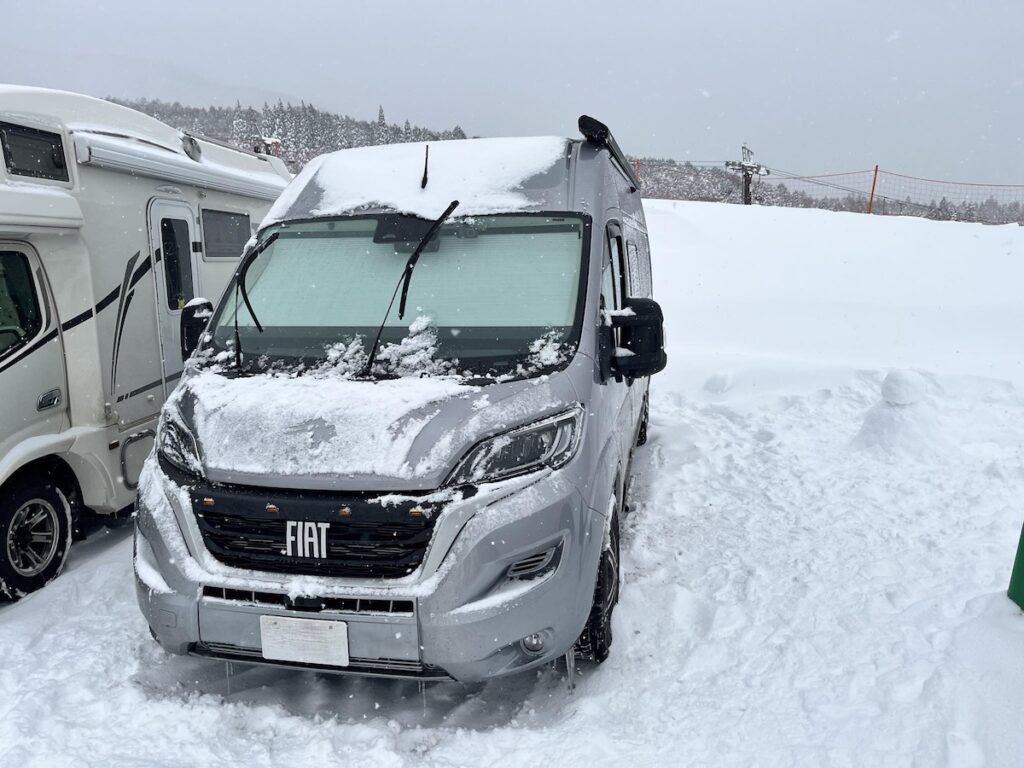 確かにボディは大柄ですが、運転席の位置が高く前方視界が開けていて、大きなミラーで側面や後方を確認しやすいので、見た目以上に運転はしやすいです。小回りが利かないので狭い道には入らない、全幅が大きいので駐車場はクルマが少ない場所を選ぶなど、最低限のポイントだけ押さえておけば問題ありません。 FF車のデュカトは雪道に弱いイメージがありますが、スタッドレスタイヤのみでまったく問題なくスキー場に行くことができました。デュカトバンコンはフロントヘビーなので、雪道でも結構トラクションがかかります。