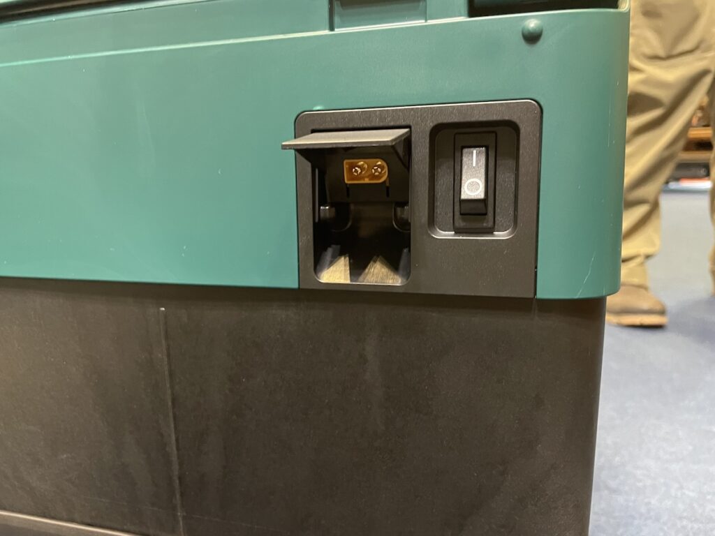 そしてこの「Clesana X1」の大きな特徴が、クルマのシガーソケットや100Vのコンセントからの給電に加え、工具用バッテリーで稼働する点。本体にバッテリーを収める口があり、バッテリー駆動時の見た目もすっきり。