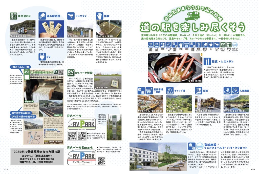 日本全国の道の駅最新情報を網羅した1冊が4月27日に発売決定。各道の駅の場所や営業時間などの基本情報の掲載はもちろん、ドッグランの有無、車中泊の可否、RVパーク併設の有無、温泉情報などクルマ旅ユーザーのためのガイドとなっている。