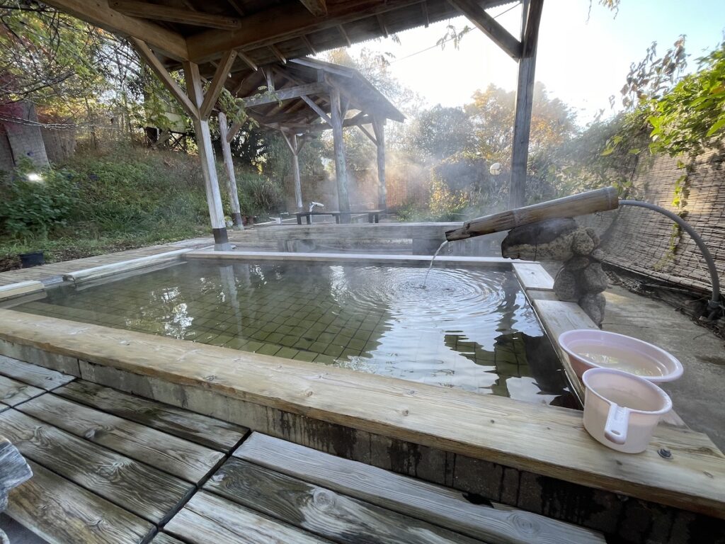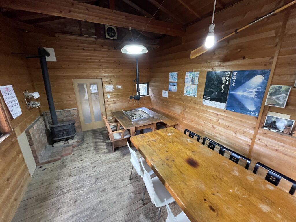 別料金ではあるが、RVパーク滞在中は向かいの七里川温泉に入りたい放題(22時以降から翌8時までは営業時間外)だし、食事も可能! 山々に抱かれたこのRVパークは、静かで快適、囲炉裏スペースもあるのでグループでの理由も楽しい。焚き火台を使用すれば焚き火もできる…。というわけで、関東圏ではなかなかない、アウトドアが一通り満喫できるRVパークなのである。