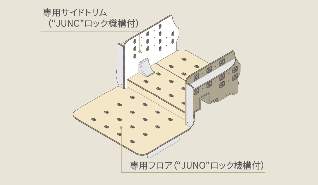 ”持ち運べる部屋”がコンセプトで、2名乗車4ナンバーのバン仕様として8月5日から発売が開始された。運転席&助手席以降に備わる、専用フロアと専用サイドトリム、6灯のインテリアランプやフロアマット、「JUNO」の専用エンブレムが標準装備になっているほか、パッケージオプションとして、「Chill、Refresh、Focus、Comfort」の4つの室内パターンが選べるようになっているのがポイント。