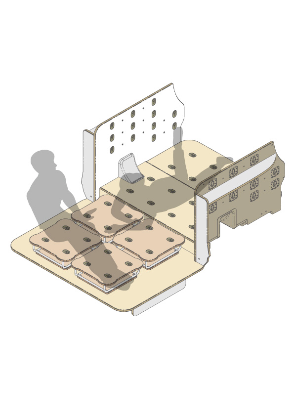 サイドテーブルも、サイドのトリムに引っ掛けるだけのカンタン装着仕様だ